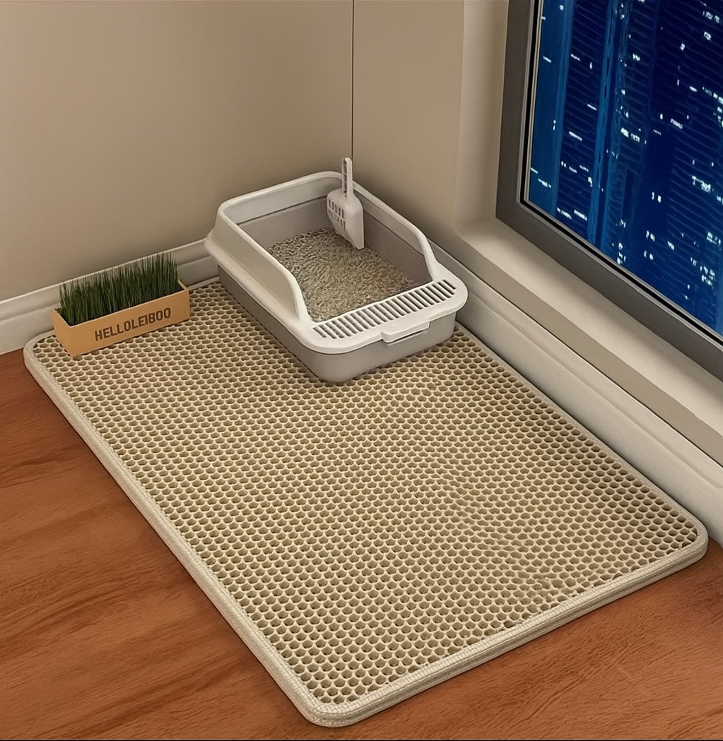 Mantenha sua casa sempre limpa com este tapete de areia inovador para gatos! Com design em favo de mel de camada dupla, ele evita que os grãos de areia se espalhem pela casa e retém líquidos com eficácia.